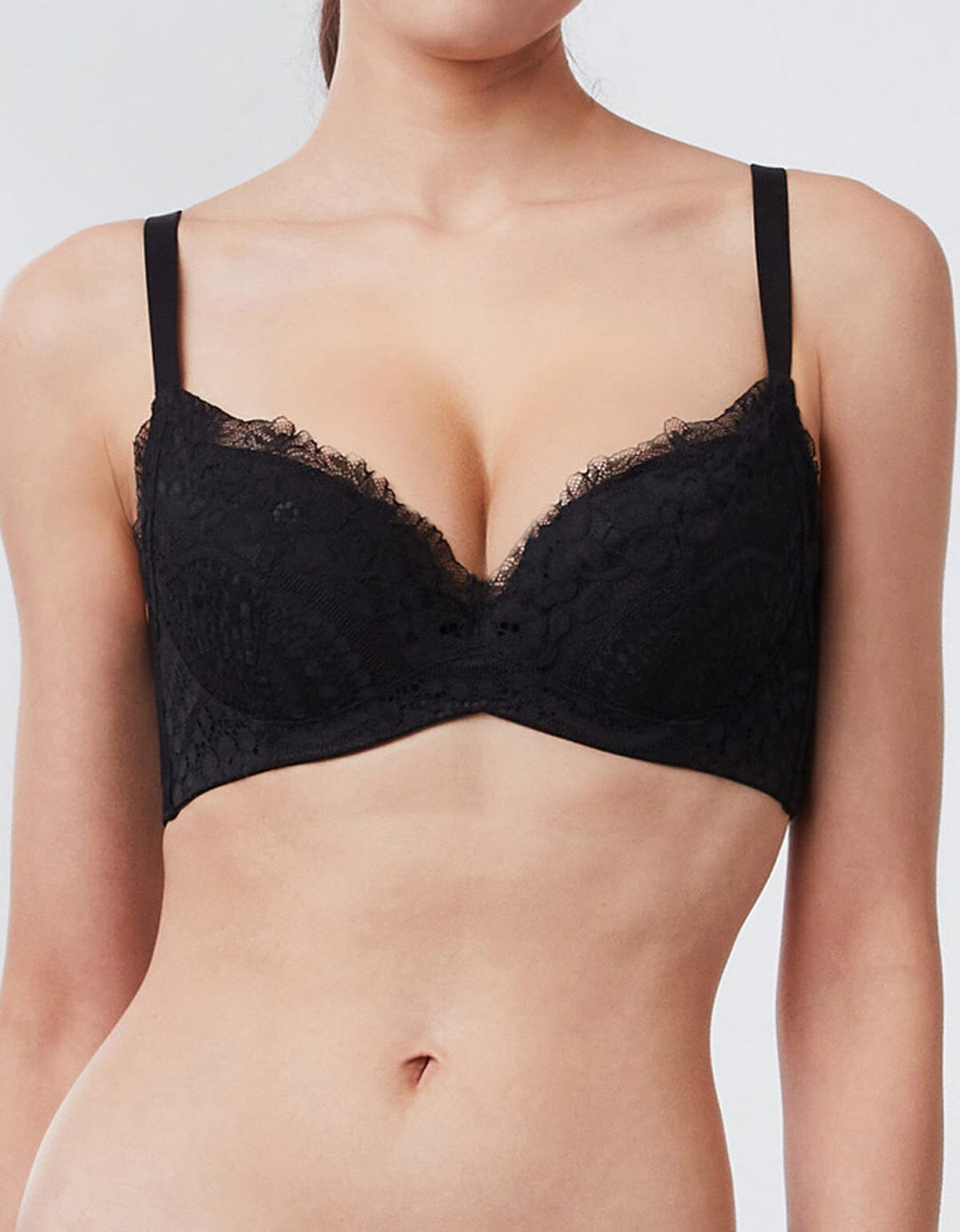 A perfect bra with inner side slings and removable cookies for push in and up with comfort. The high wing coverage smooths your underarm and back, offers you a beautiful shape of busts.