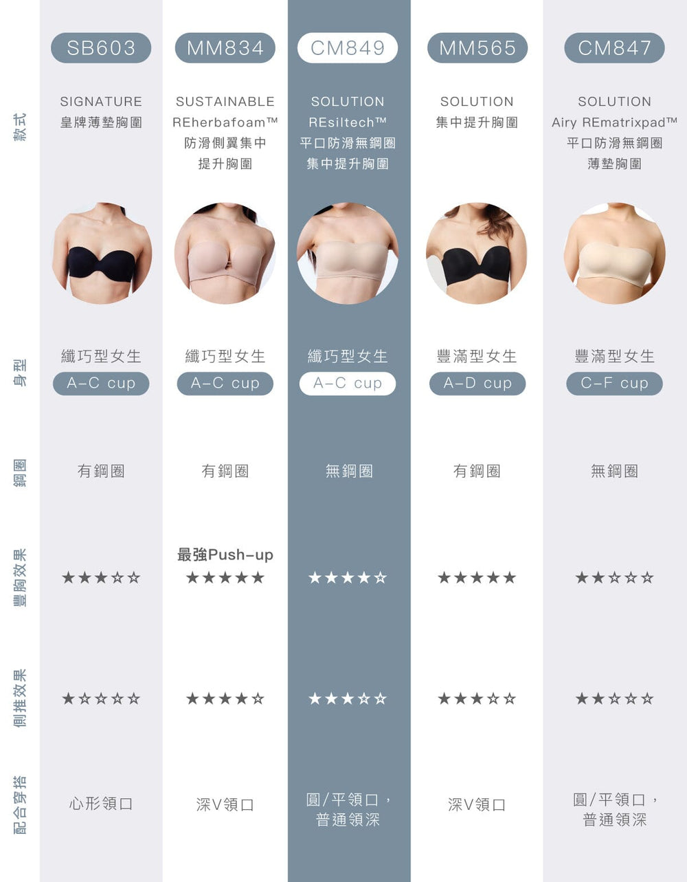 SOLUTION REsiltech™ Strapless Non Wired Light Push Up Bra