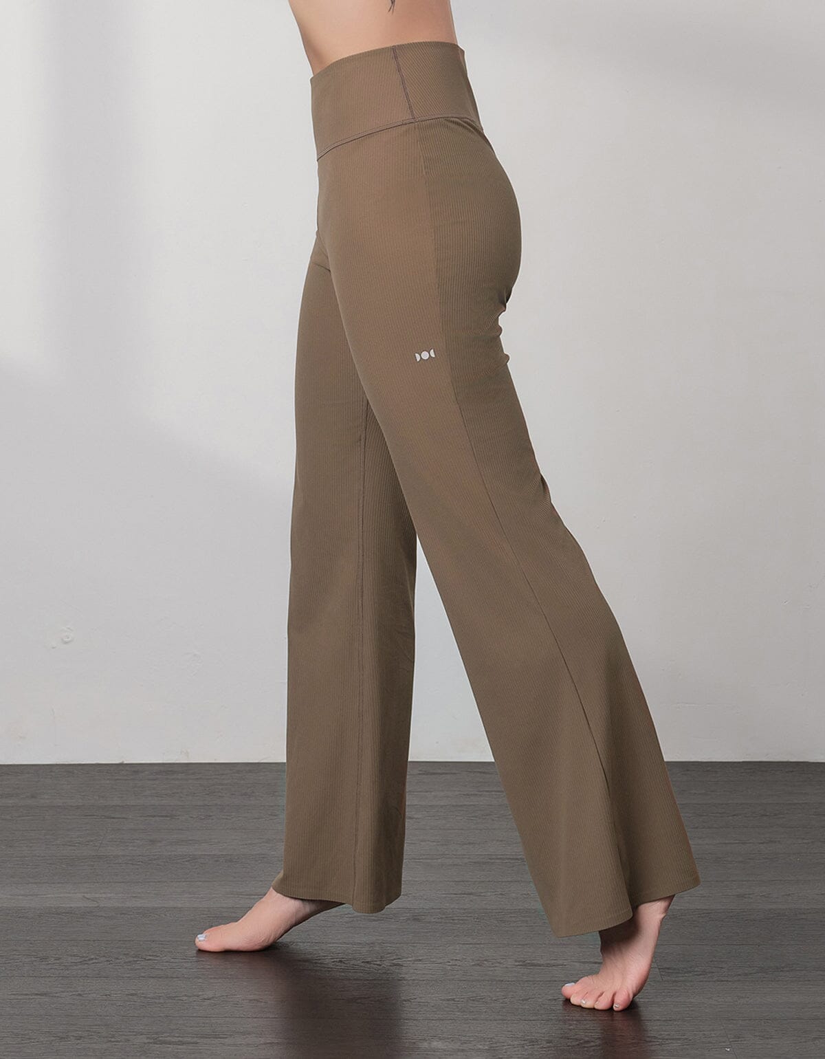 HOW-EFFORTLESS Ribbed High Waist Flare Leg Full Length Flare Her own words SPORTS New Pine Bark S