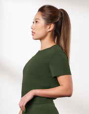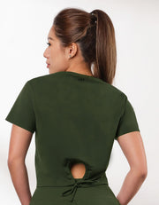 HOW-EFFORTLESS Slim Fit Keyhole Tie-Back Short Sleeve Crop Top