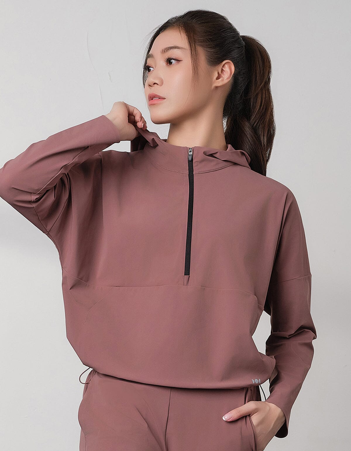 HOW-STAYDRY Half Zip Hoodie Long Sleeve Her own words SPORTS Rose Taupe S