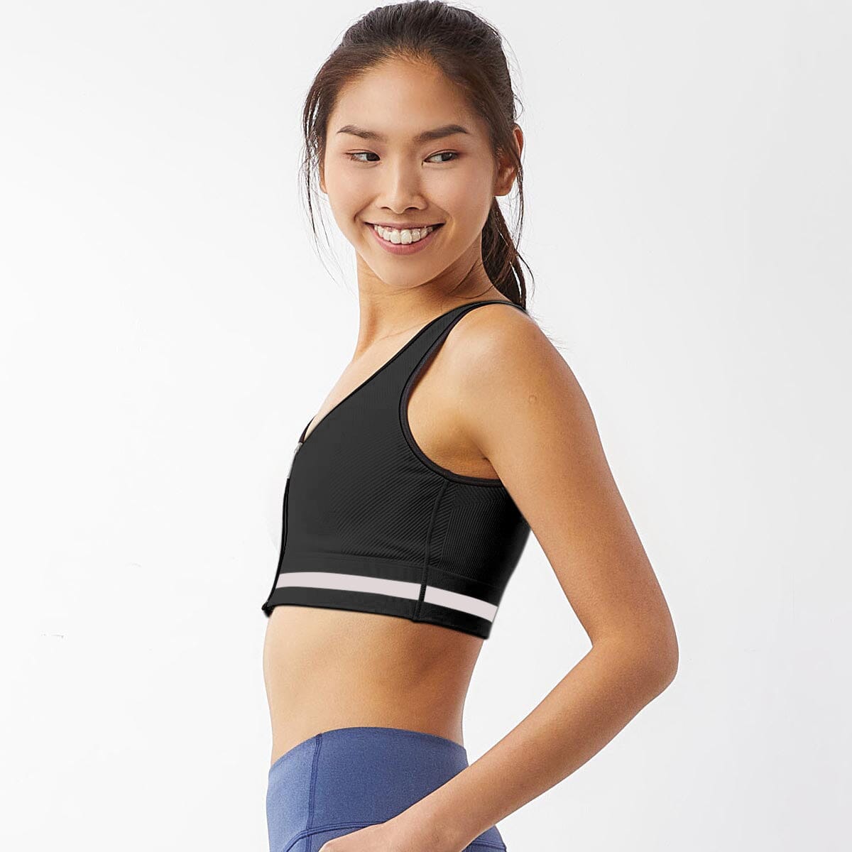Made with stretch fabric & targeted support, this zip-front bra is highly supportive and breathable.