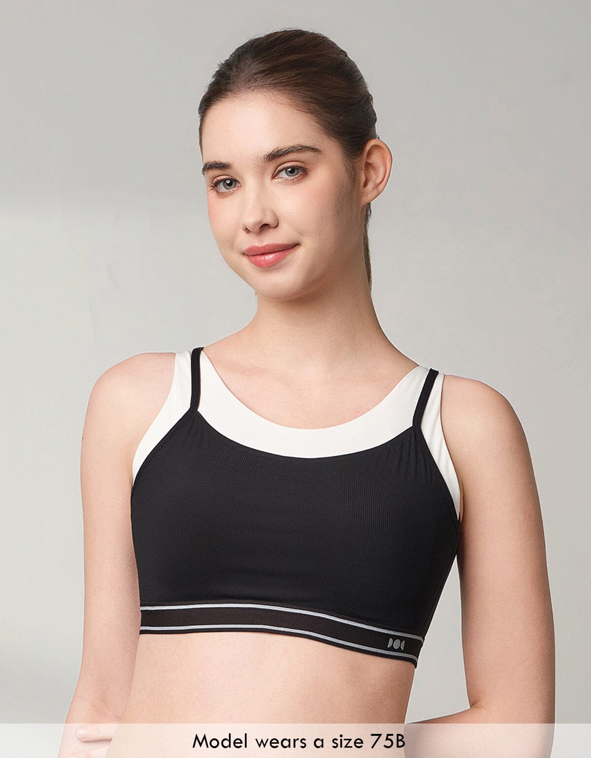 (No photo) HOW-AIRY Ribbed Breathable Medium Impact Sports Bra Sports Bra Her own words SPORTS Black x Snow White 70C